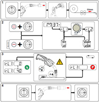 Cable resistance alignment is required for the new process control. Without this adjustment, a correction of the arc voltage while welding is necessary with hose package lengths that exceed 1.5 m. If, however, adjustment of the cable resistance is performed, then the arc correction is virtually 0 V even in case of long lines.